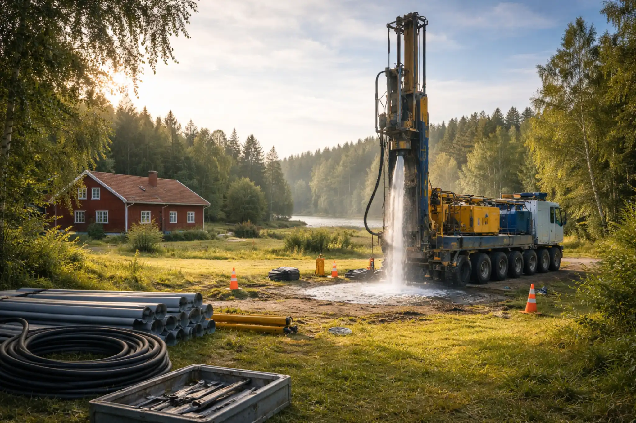 och markförhållanden. Våra VVS-experter ser till att brunnen placeras optimalt för långsiktig drift och hållbarhet.